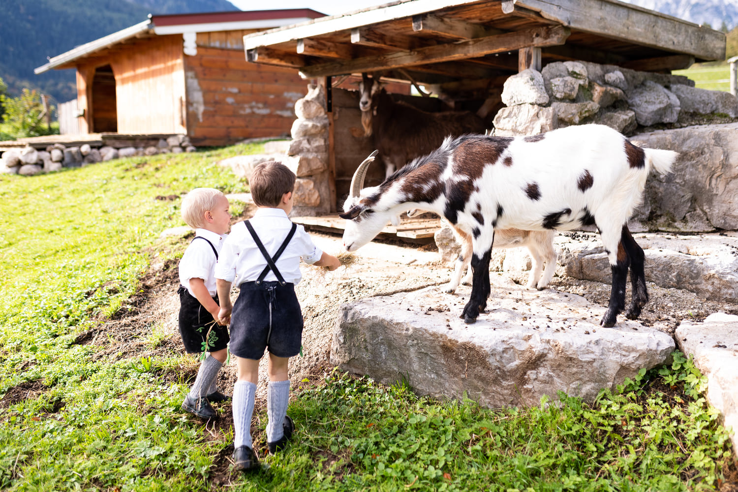 Natur, pur erleben – wie bei einem Bauernhofurlaub! Auf unserem Hof im Berchtesgadener Land können Ihre Kinder Kleintiere wie Esel, Ziegen, Hühner, Enten und Hasen hautnah erleben. Die handzahmen Tiere freuen sich über Streicheleinheiten.
